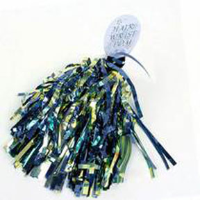 Shimmer pom with attached elastic band. Wear in your hair or on your wrist for a pom you won’t drop.