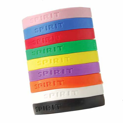 Use this spirit bracelet to show your school or team colors. The spirit bracelets are made of rubber and have the word “SPIRIT” carved into them. (sold per dozen)